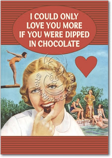 Valentine's Day is only a short time away, Sisters and Brothers. Beyond all the candy you could give your sweetheart how about a card that mentions or shows chocolate? What? You think it might be too much of a tease? So give them chocolate, too. The funny folks from Noble Works Cards sent us three of their Valentine's Day selections to show to you all today.